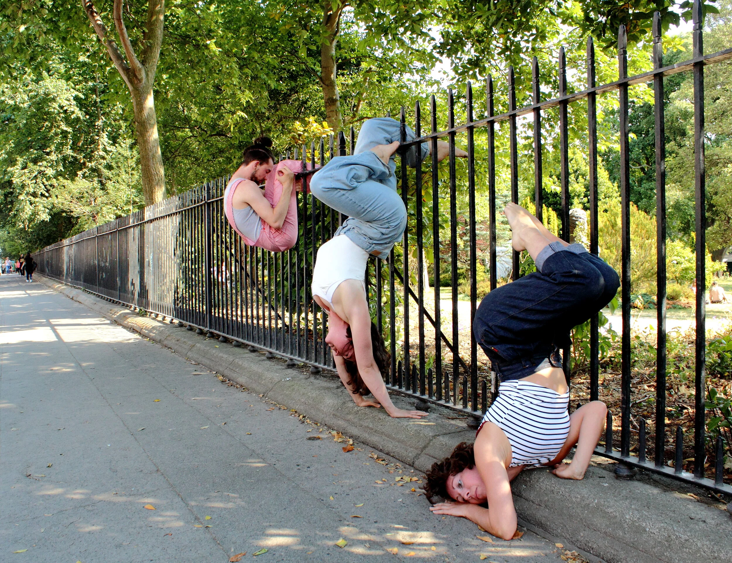 “In the City Still” is a completely unique site-responsive promenade performance exploring the relations between the body and urban spaces, uncovering true stories and historic gems through acrobatics, handbalancing, contortion and live music in strikingly poetic imagery. Debuted as a solo performance by Seve Feathers at the Limerick Fringe 2018, it was developed as a group performance in residency at Spoffin (NL) in 2018.