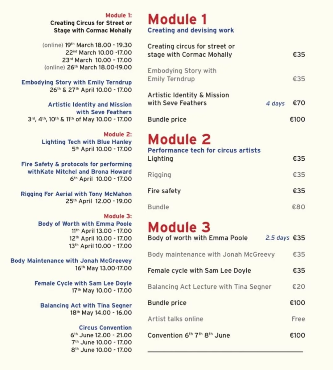Artistic Development Workshops for Dublin Circus Project’s Professional Circus Artist Development Programme,