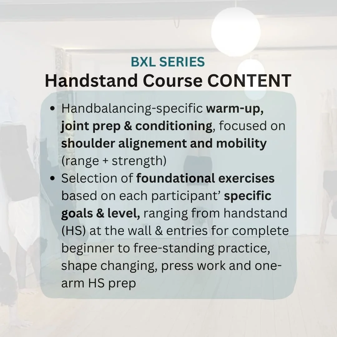 All coaching is based on active, strength-oriented and mobility-focused training methods cultivated during over a decade of consistent handbalance and contortion training with established practitioners & own experience as a coach and self-produced performing artist.